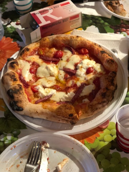 August 20, 2018We flew into Rome, checked into our hotel and headed to Campoleone to visit some my cousins and their family who we have not seen in over 20 years. We had a wonderful time highlighted by my cousin Lello’s excellent pizza cooked on his hand made pizza oven made by him and his Father. We also enjoyed olives from their garden and their own olive oil and wine. What a wonderful day!