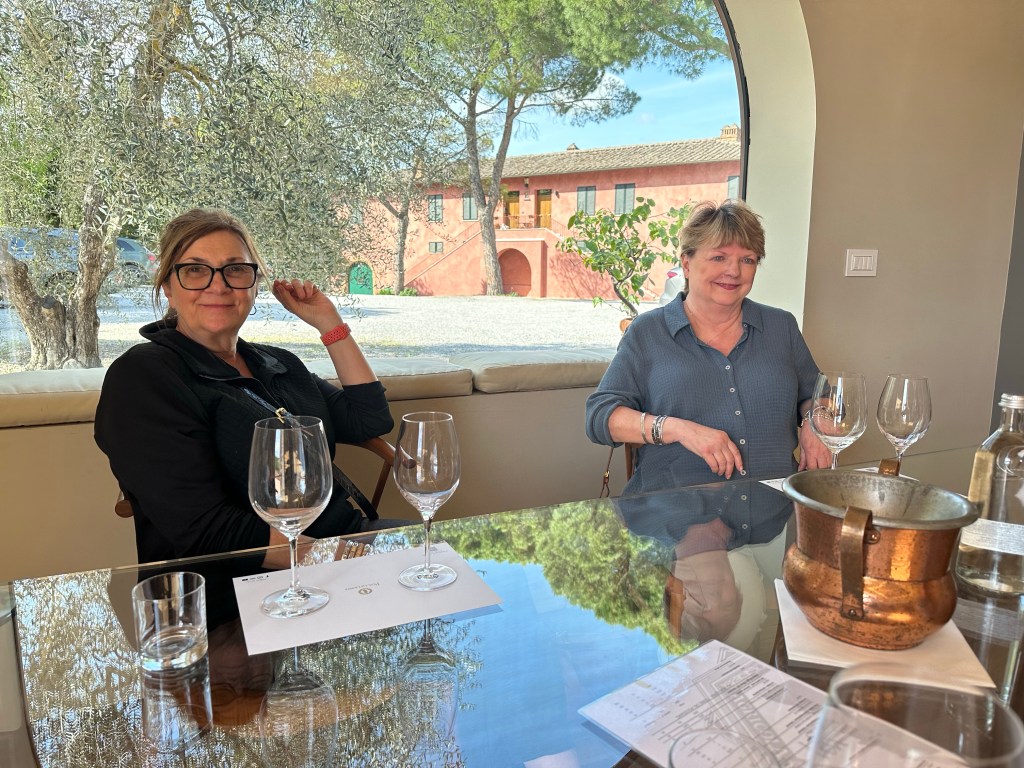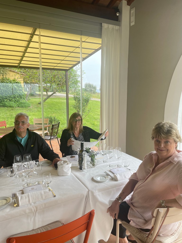 May 2, 2023We are having such a great time in Tuscany. Such a beautiful place with marvelous wine, food and people! After checking into Hotel Italia in Cortona, we headed to Montepulciano and a wonderful tasting of Vino Nobile di Montepulciano with our friends Loredona and Fabio; amazing day! The next day we headed to Avignonesi winery for a nice tour with Marina followed by a great lunch and wine tasting.