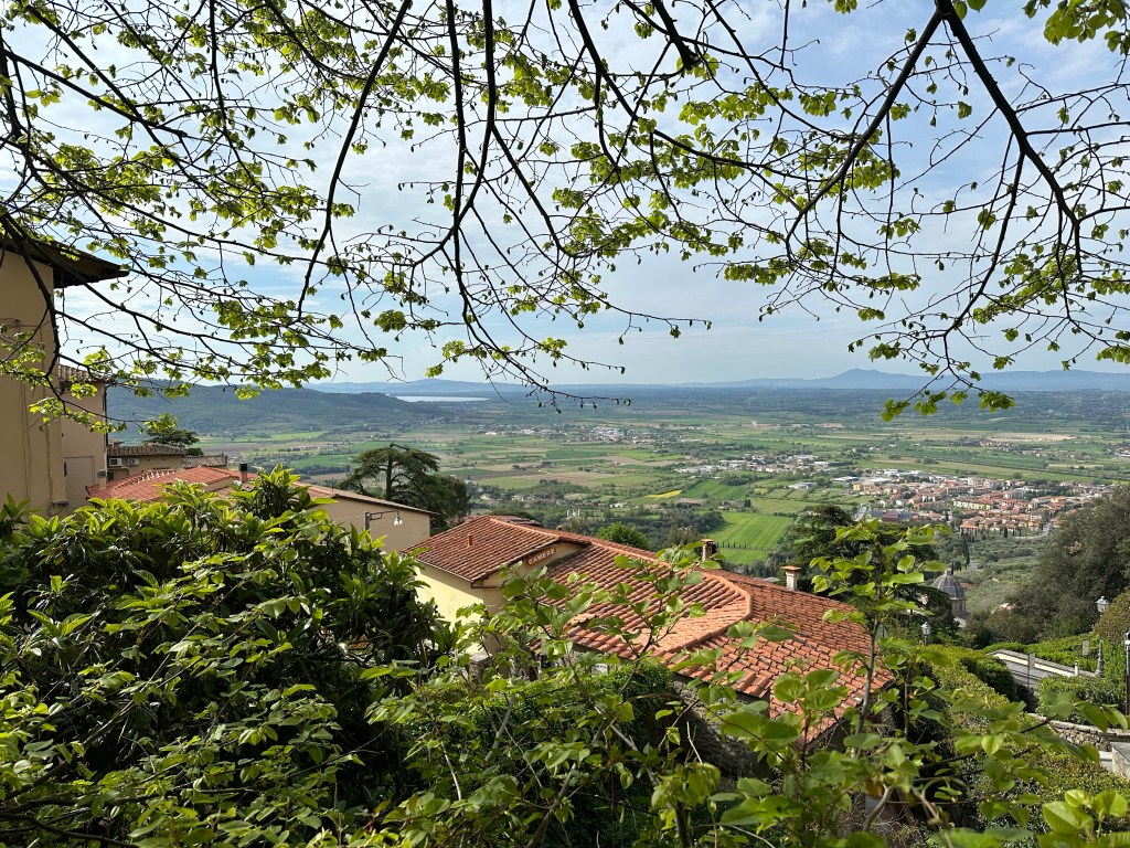 April 28, 2023The first day of the trip is always tough as we try to fight off sleep and adjust to the new time zone. We had a nice lunch at a little restaurant then drinks and dinner at Cacciani; one of our favorites, founded in 1922. Today, we drive to Cortona for our tour of Tuscany.