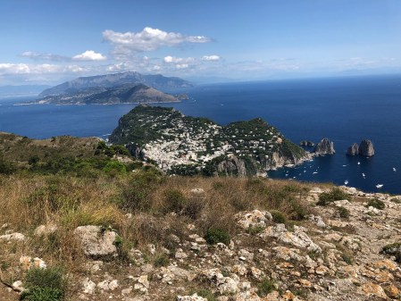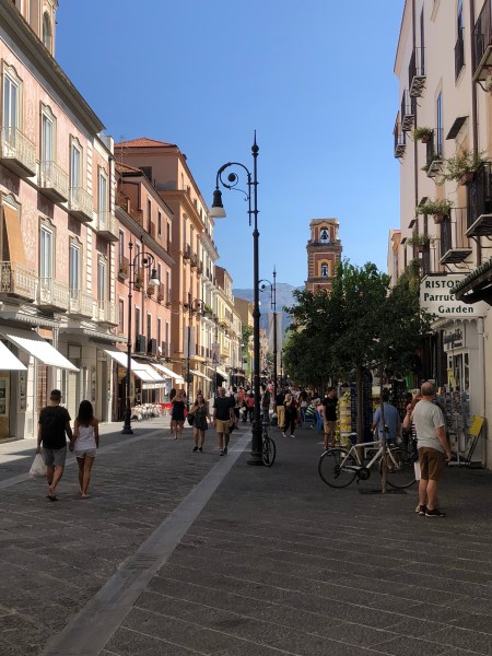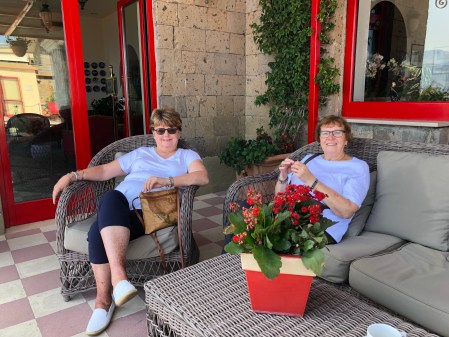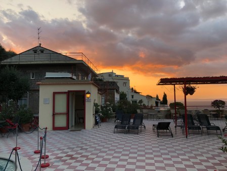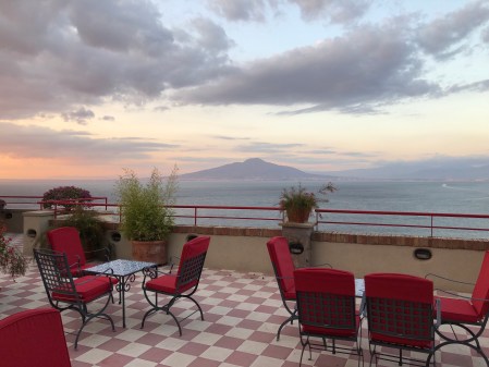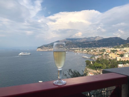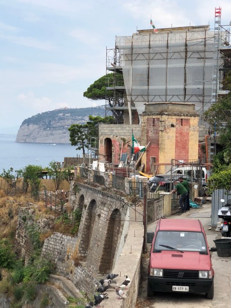 We had a nice day in Sorrento starting with an excellent pizza at a new (to us) Pizza place called Franco’s near Piazza Lauro and the Circumvesuviano station. Then we walked through a lemon grove to checkout the progress on restoring the Lorelei, and old hotel that we used to stay at but has been abandoned for 10 plus years. We ended the day with a nice dinner at one of our favorites, The Garden. The only issue has been the heat. It is a bit hot and humid this time of year; need to get back to out April/May schedule!