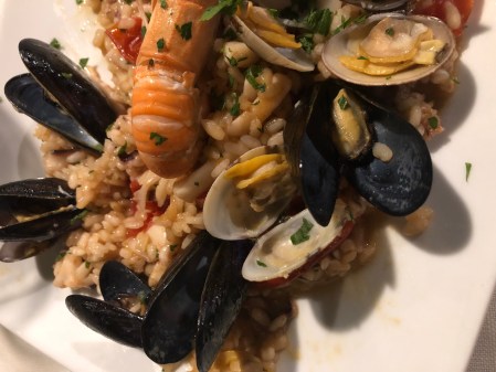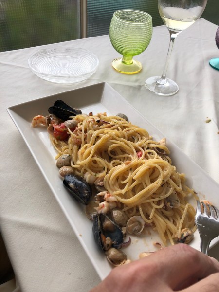 We flew in yesterday morning and spent the night in Rome. We went to a favorite restaurant, Otello della Concordia. It was delicious as always. Now we are on the train to La Spezia and then on to the Cinque Terra.